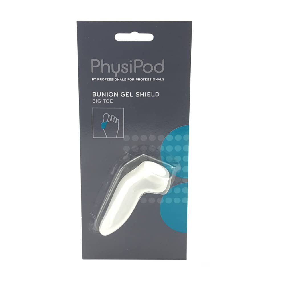 The PhysiPod Bunion Gel Shield is tailored for the painful bunion, by offering a shaped and contoured shell to protect and palliate the joint from the shoe. Conveniently thin and tapering, the bunion shield can be worn in most fashion footwear. Easy application and durable, the PhysiPod Bunion Gel Shield relieves friction and pressure from footwear pressure, and may be worn on either foot.